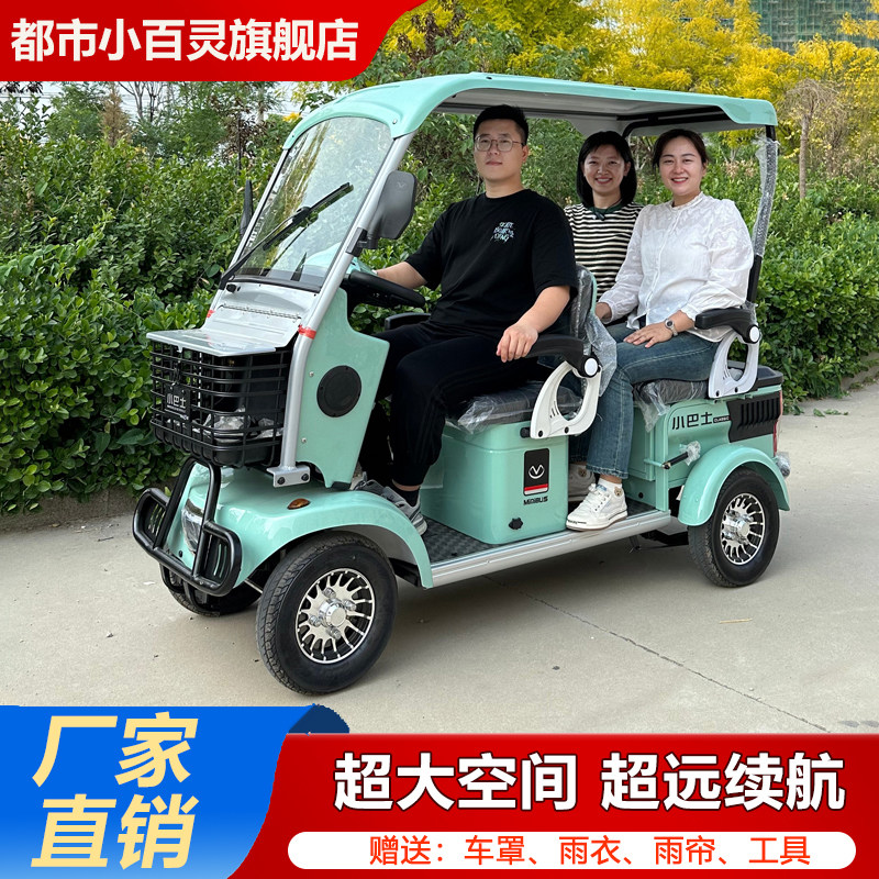 小巴士E900四轮电动车老年人代步车助力车雨棚接送孩子景区观光车