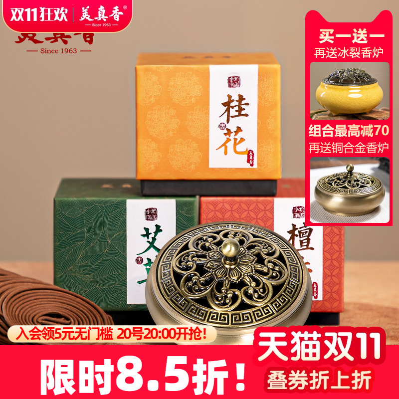 美真香天然檀香盘香沉香薰衣草熏香家用室内松塔龙涎桂花艾草睡眠