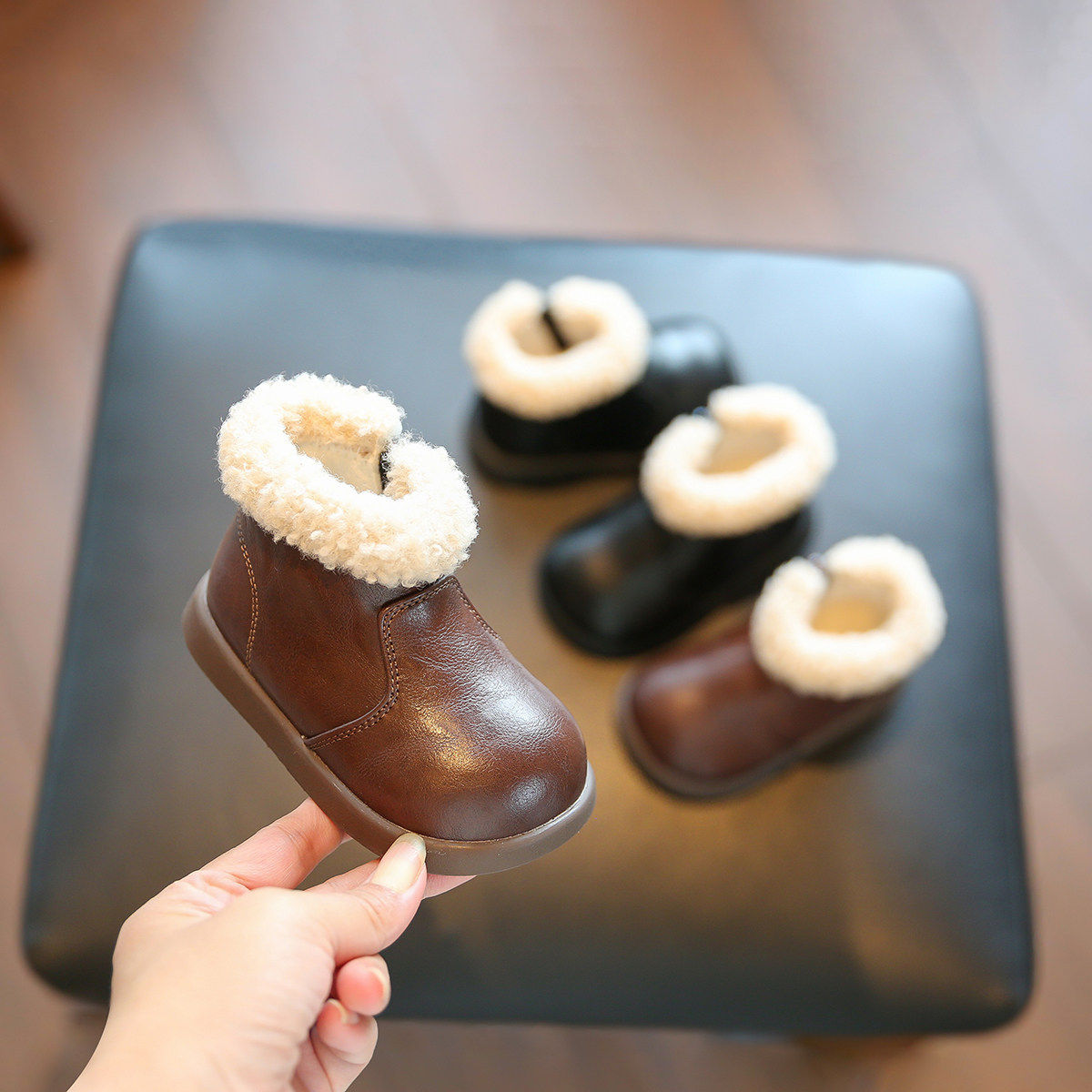 婴儿勃肯鞋女宝冬鞋保暖棉鞋软底男宝宝步前学步鞋儿童鞋子毛毛鞋