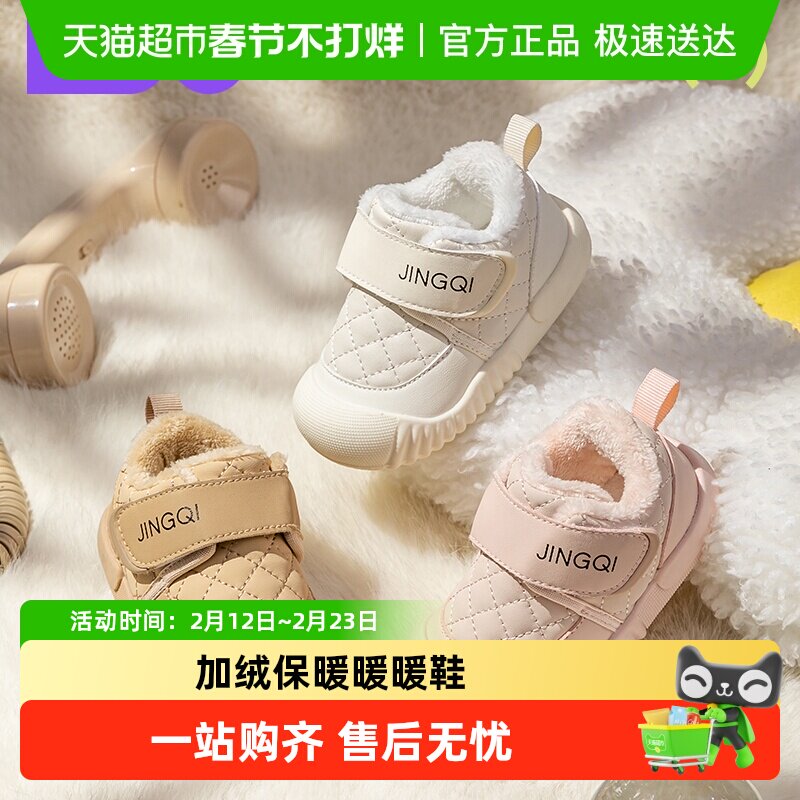 婧麒婴儿鞋秋冬季加绒1-3岁宝宝雪地靴保暖冬鞋男女幼童学步棉鞋