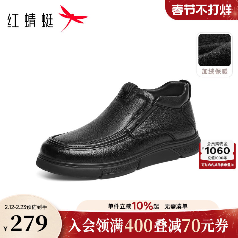红蜻蜓加绒男士皮鞋冬新款男鞋保暖真皮高帮冬鞋舒适羊皮爸爸棉鞋