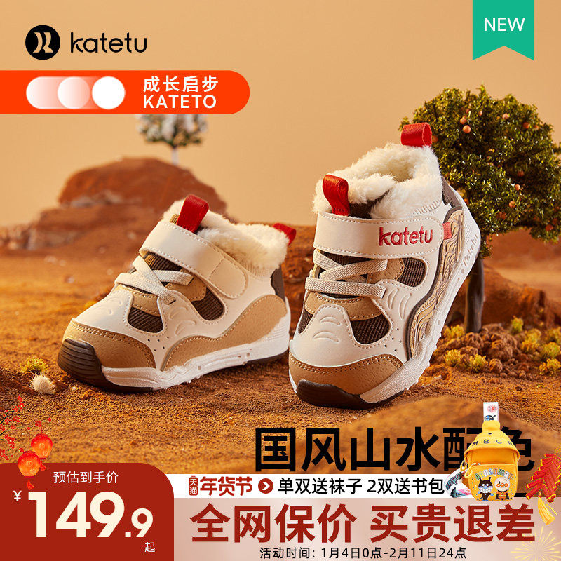卡特兔宝宝加绒学步鞋男童防滑冬鞋女童加厚运动鞋儿童保暖机能鞋