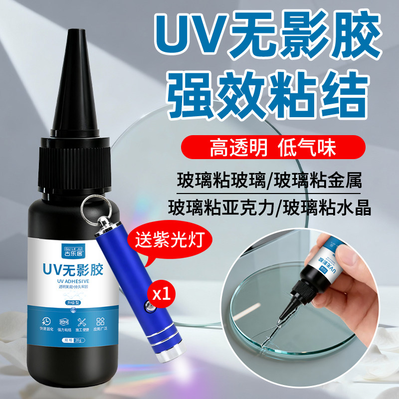 UV无影胶粘茶几钢化玻璃修复水晶装饰吊灯奖杯紫外线光固化粘合剂金属亚克力鱼缸专用透明快干强力无痕胶水