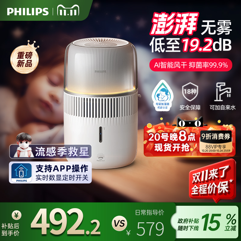 [母婴认证]飞利浦轻音无雾加湿器孕妇婴儿卧室家用香薰一体HU5710