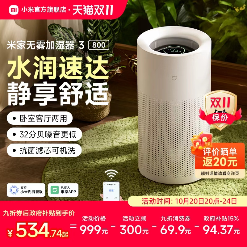小米官方旗舰店米家无雾加湿器3-800家用卧室客厅静音抗菌大容量