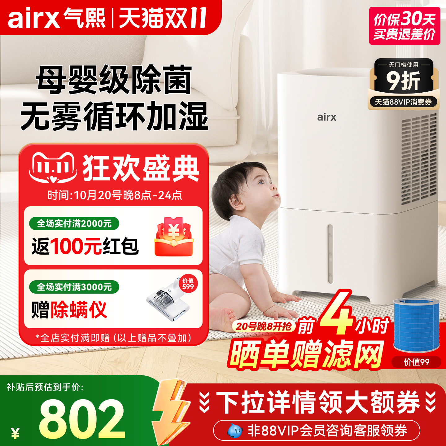 【补贴15%】气熙airx母婴无雾加湿器家用轻音孕妇婴幼儿冷蒸发H8