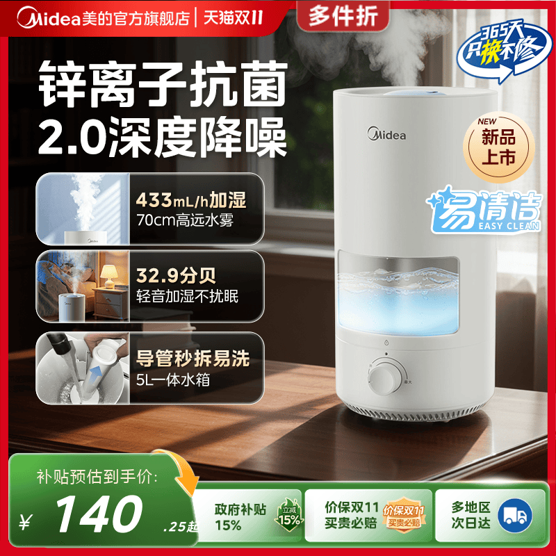美的新款加湿器空气孕妇静轻音婴儿大容量卧室房间冬天家用2025新