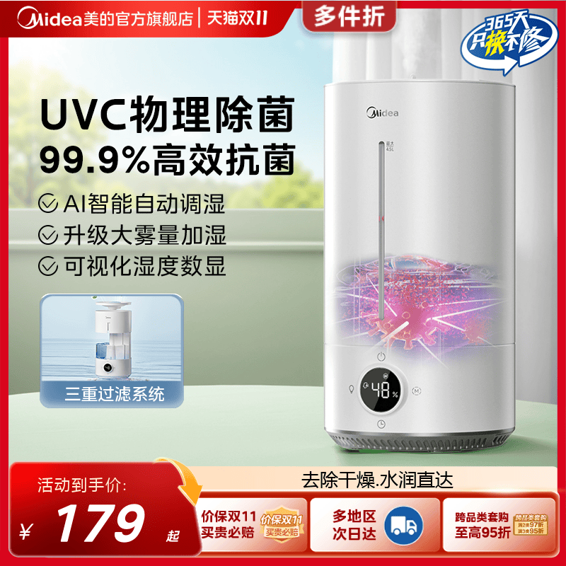 美的加湿器卧室家用静音孕妇婴儿空气净化小型大容量桌面喷雾2025
