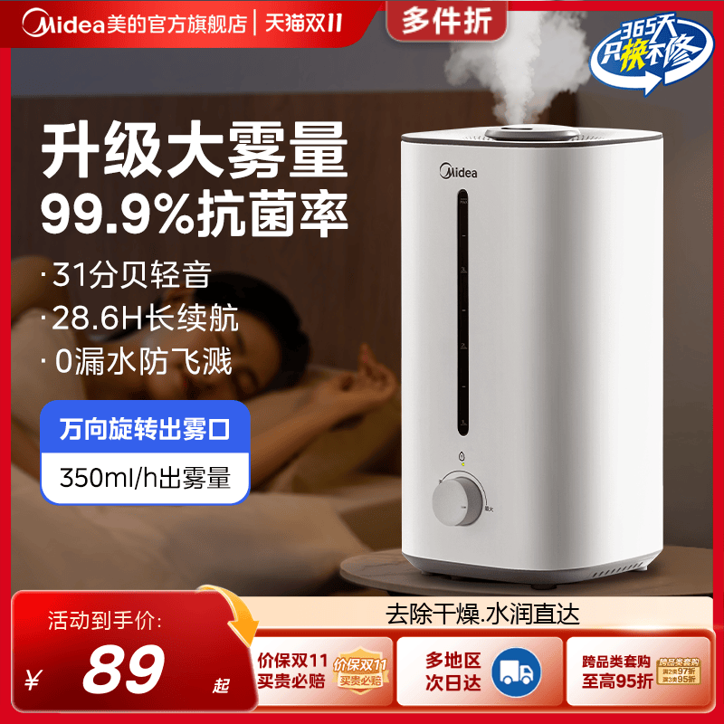 美的加湿器家用静音卧室小型孕妇婴儿空气净化大容量客厅喷雾新款