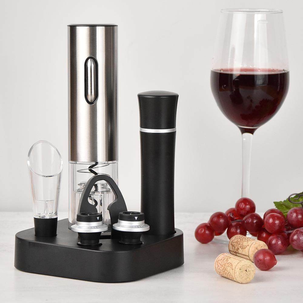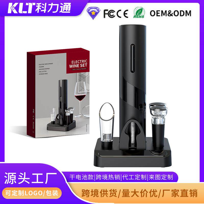 直销新款圆乐电动开瓶器 跨境新款底座款五合一红酒多功能电动开