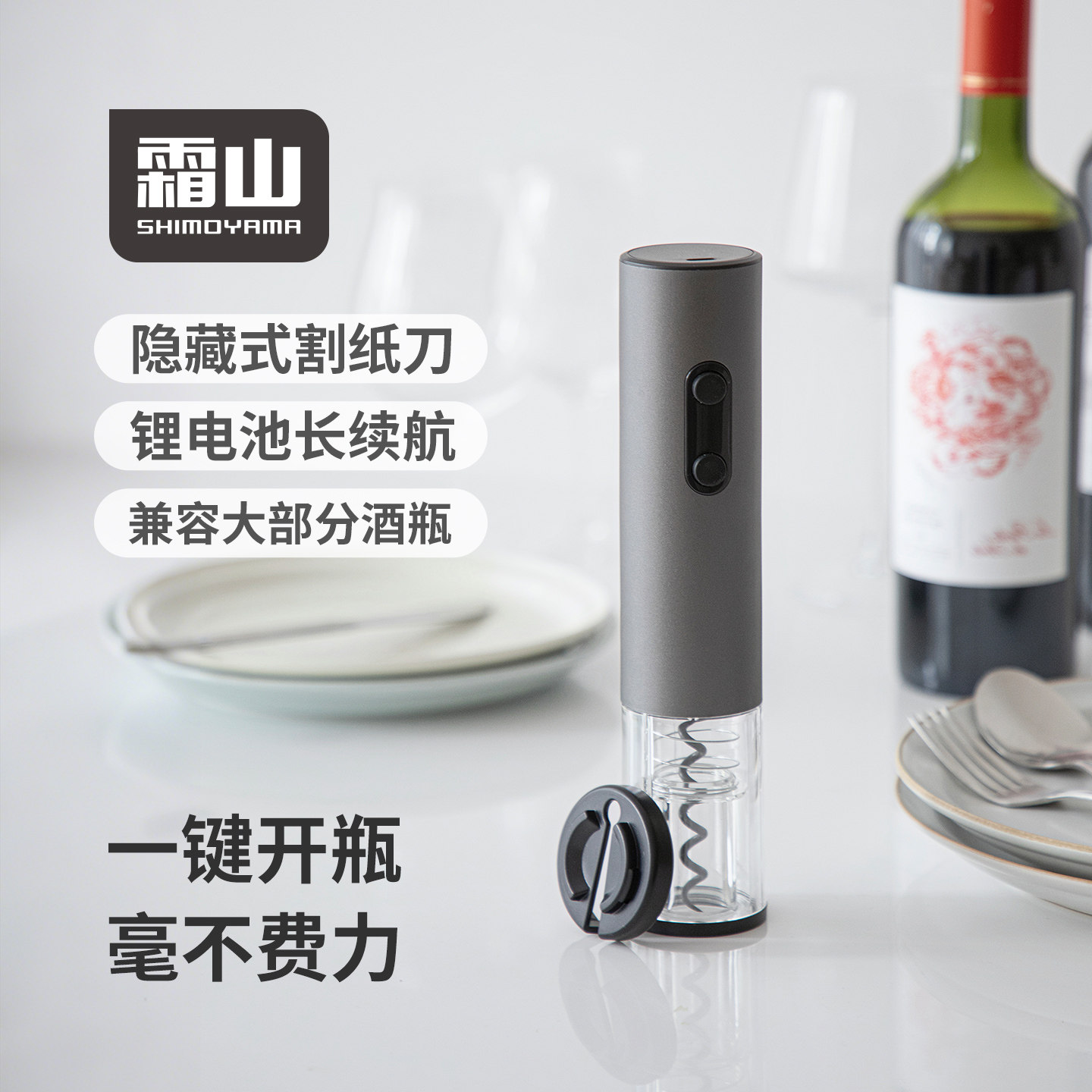 【好物体验专享】霜山铝合金电动开瓶器葡萄酒一键开瓶神器充电款