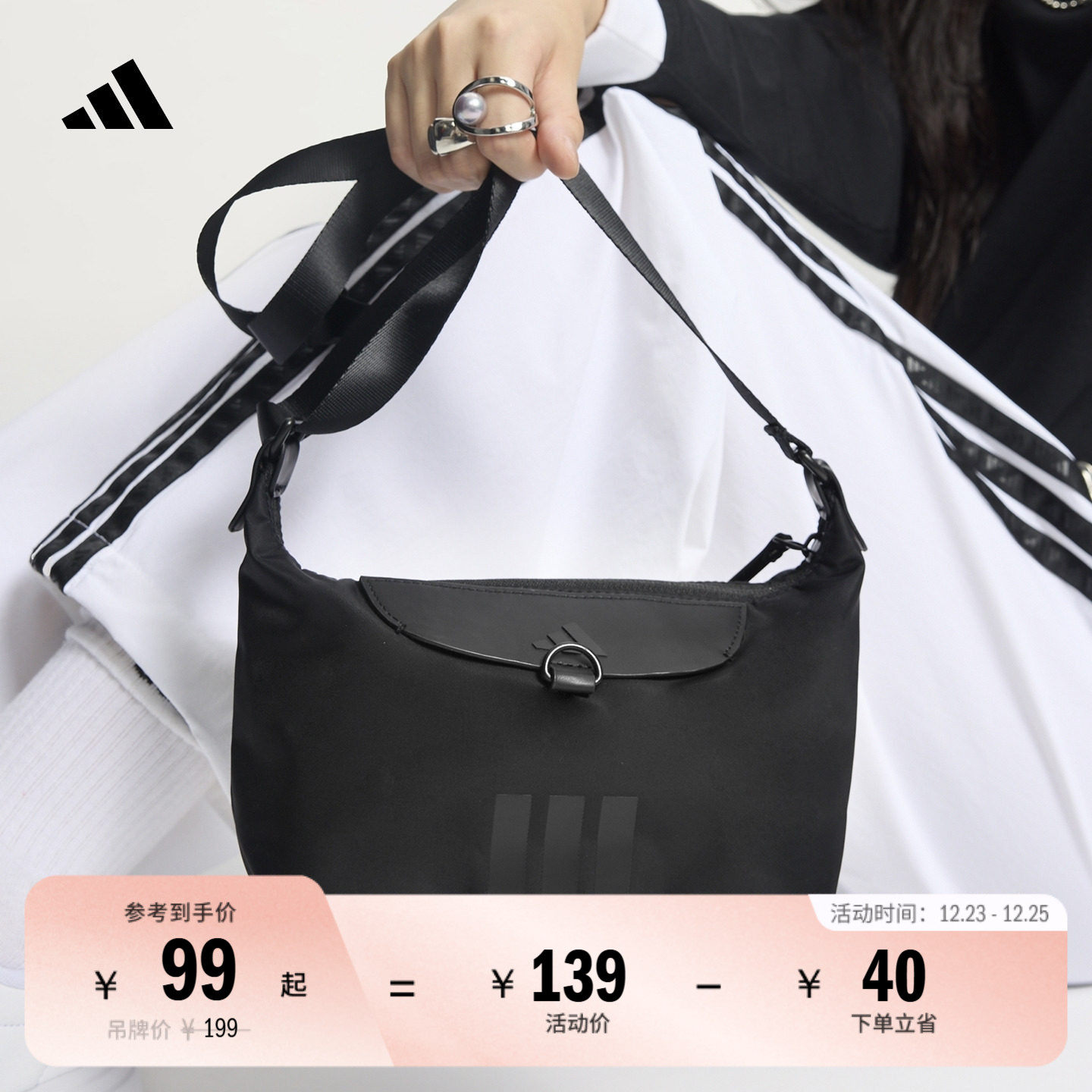 运动可拆卸肩带手提斜挎包单肩挎包女子新款adidas阿迪达斯三叶草