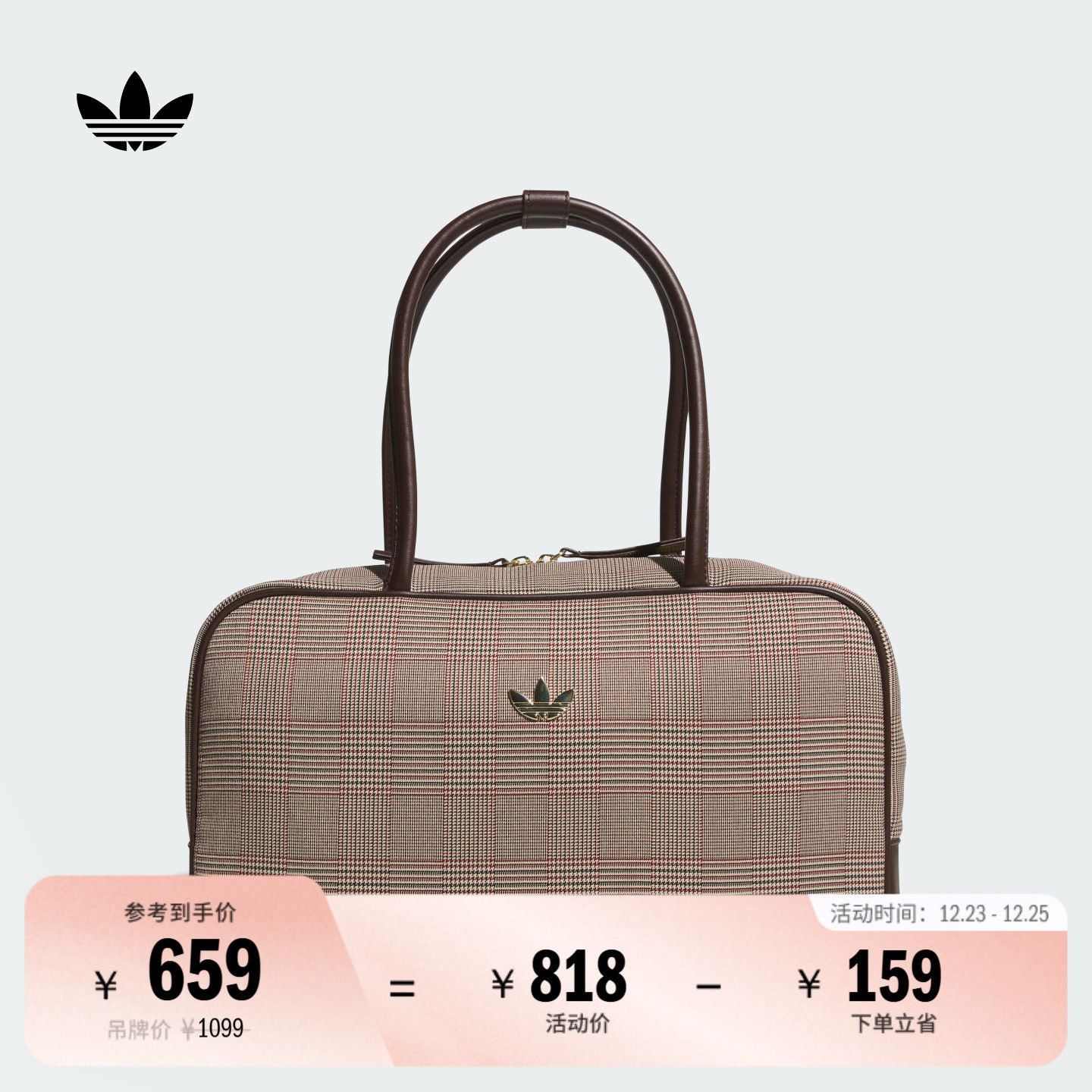 格纹多口袋经典实用运动单肩包拎包女子新款adidas阿迪达斯三叶草