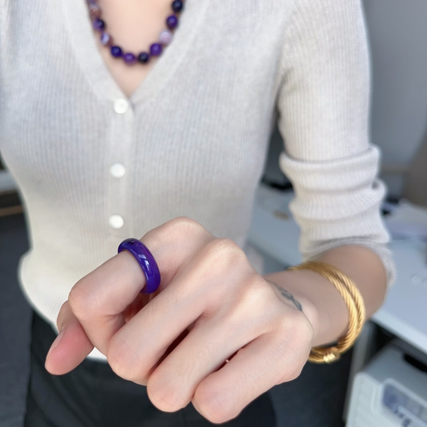 紫玉髓戒指国风花紫系润现代中古指环叠戴简约vintage彩色扳指