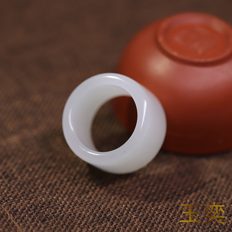 良器艺术| 天然和田玉戒指 羊脂白玉方圆玉扳指 指环男女设计款