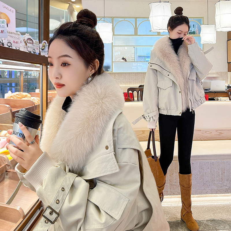 糖宝高品质2025秋冬新款超大狐狸毛领短外套女皮草派克服时尚保暖