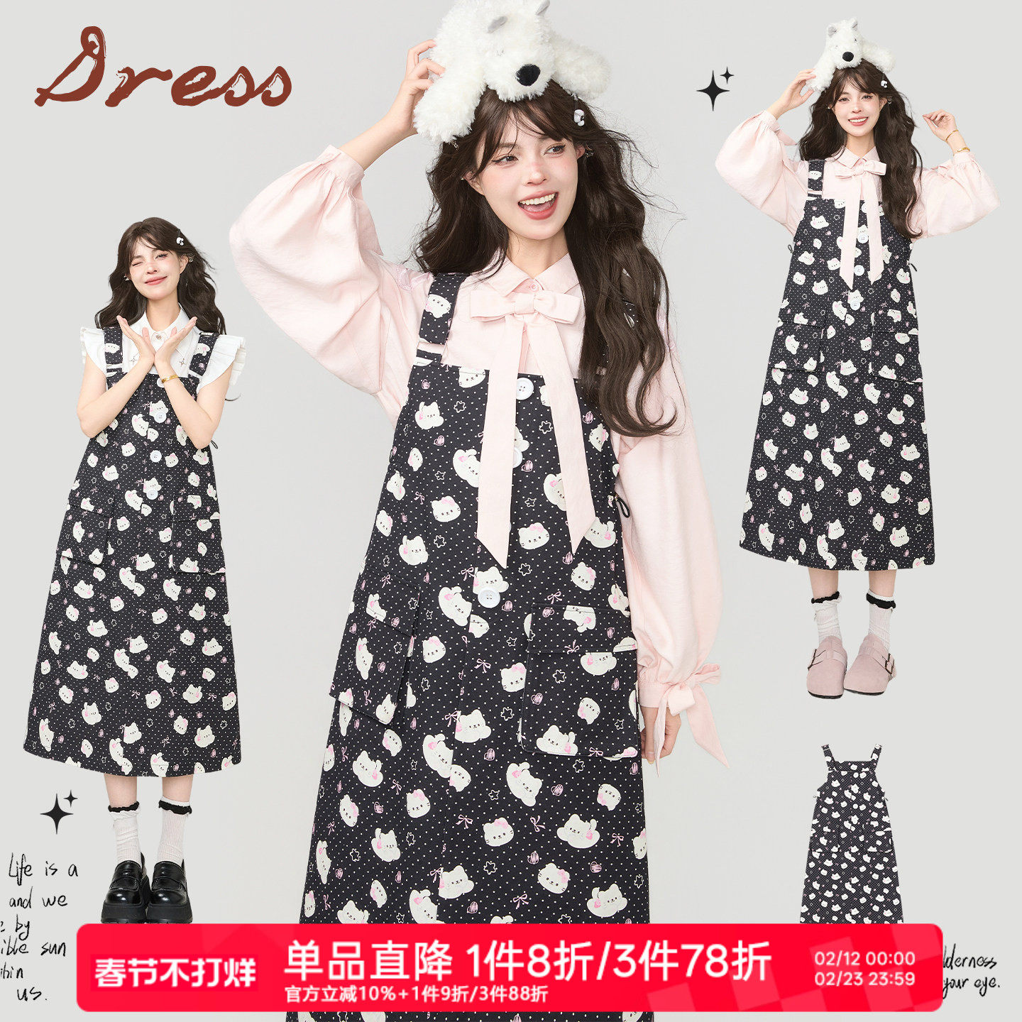 森女部落甜美风童趣小猪设计感背带连衣裙女2026新款百搭背心裙冬