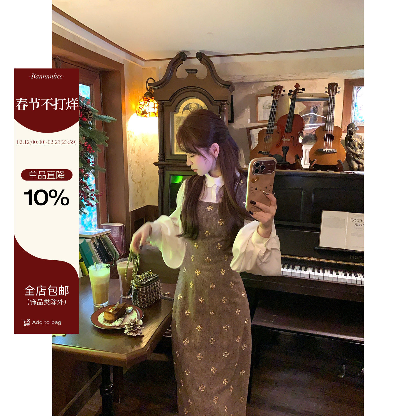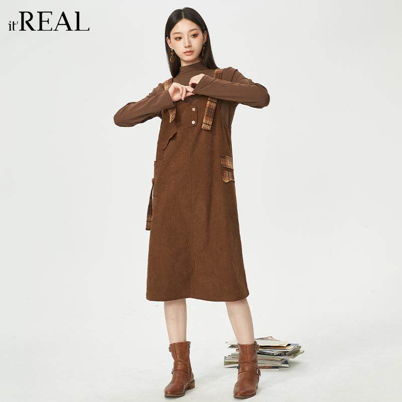 it'real瑞尔25冬季新款复古文艺背带连衣裙搭外套连衣裙套装