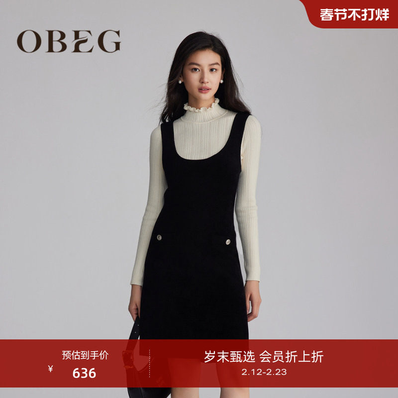 OBEG欧碧倩法式气质名媛风背带连衣裙针织衫两件套套裙冬10484165