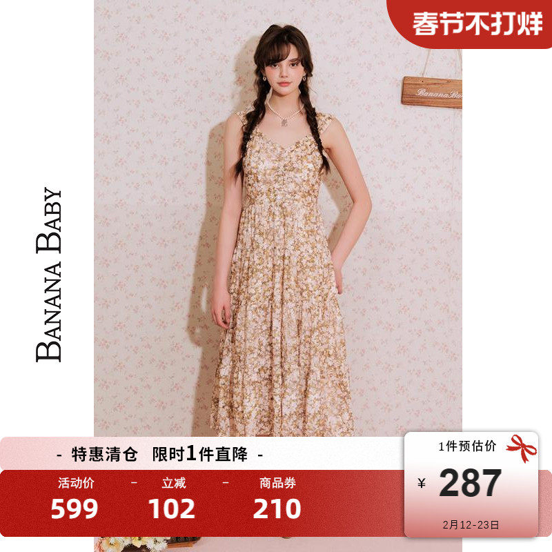 BANANA BABY2025年度假风背带连衣裙女收腰显瘦显高碎花长裙