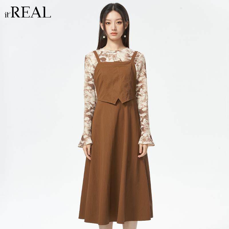 it'real瑞尔秋新款法式复古吊带裙外搭叠穿森系背带连衣裙