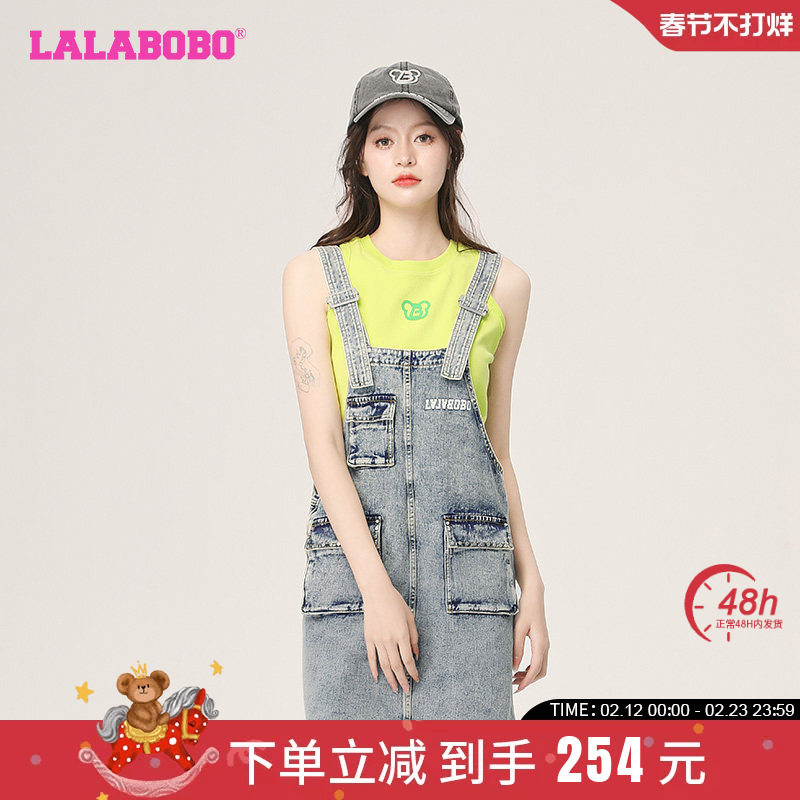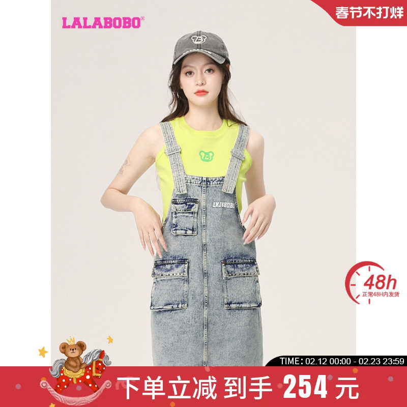 【设计师潮牌】LALABOBO2024夏新款修身显瘦潮流牛仔背带连衣裙女