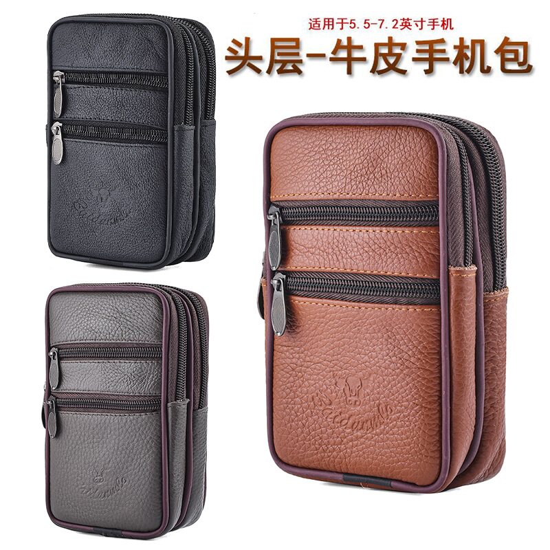 2025新款男士牛皮手机腰包穿皮带手机套多功能户外斜跨小挂包工地