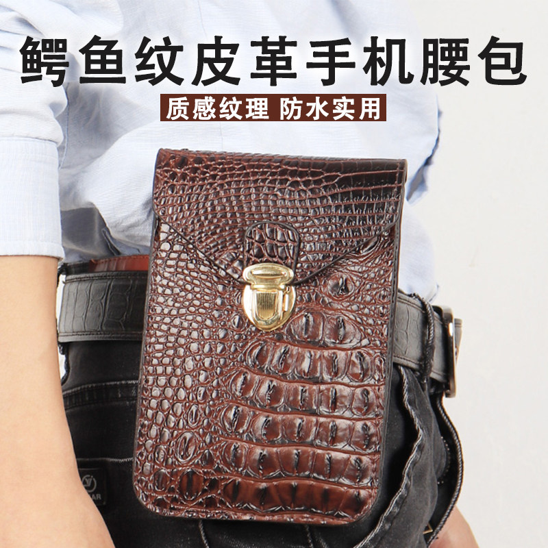 鳄鱼皮手机包纹手机腰包穿皮带竖款男士腰包多功能时尚休闲小挂包