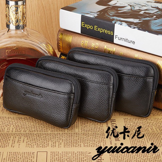 真皮穿皮带男士手机腰包穿皮带时尚收银包耐新款贴身迷你包多功能