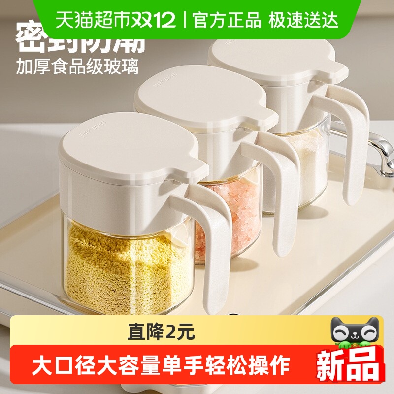 双枪厨房调料盒盐罐套装家用盐味精调味罐厨房收纳盒密封防潮佐料