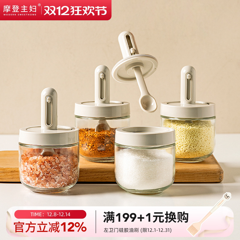 调味罐勺盖一体调料分装瓶子家用玻璃盐罐厨房轻奢调料盒组合套装