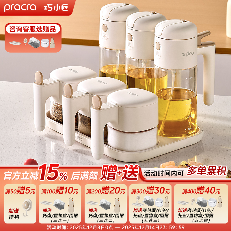 物鸣调料盒套装厨房家用调味料罐味精盐罐油壶收纳组合调料分装瓶
