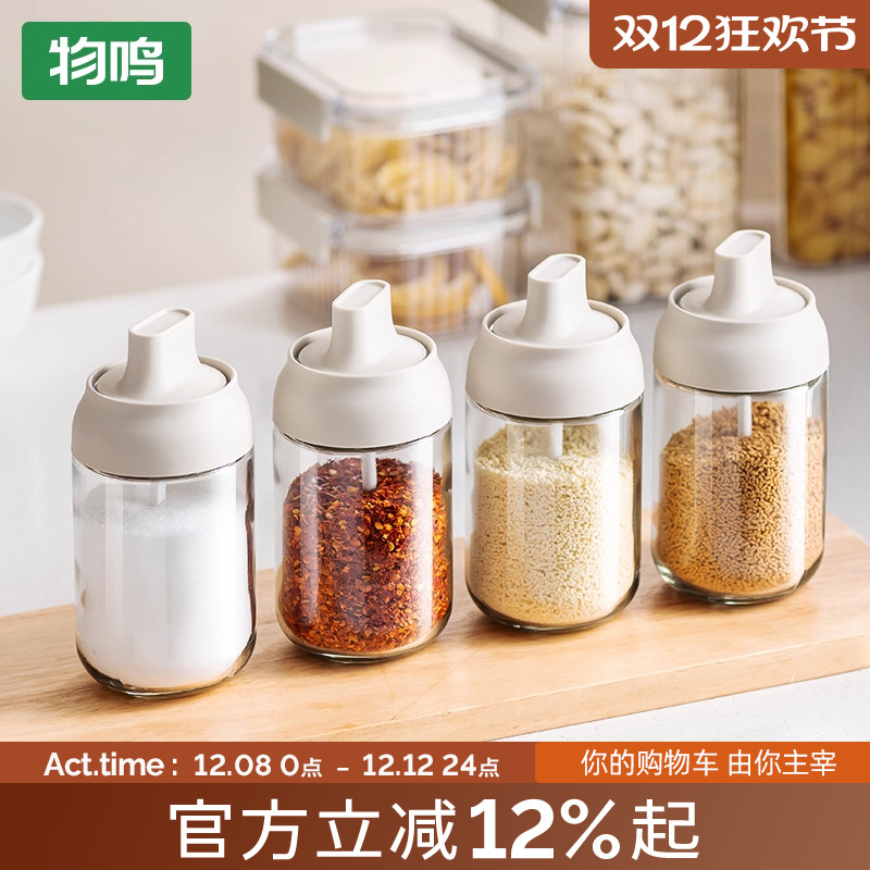 物鸣调料罐套装勺盖一体调料盒厨房家用调料分装瓶油壶盐罐调味罐