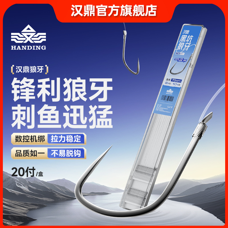 汉鼎无结子线双钩袖钩鲢鳙双钩成品鲫鲤鱼新关东20付无刺鱼钩仕挂
