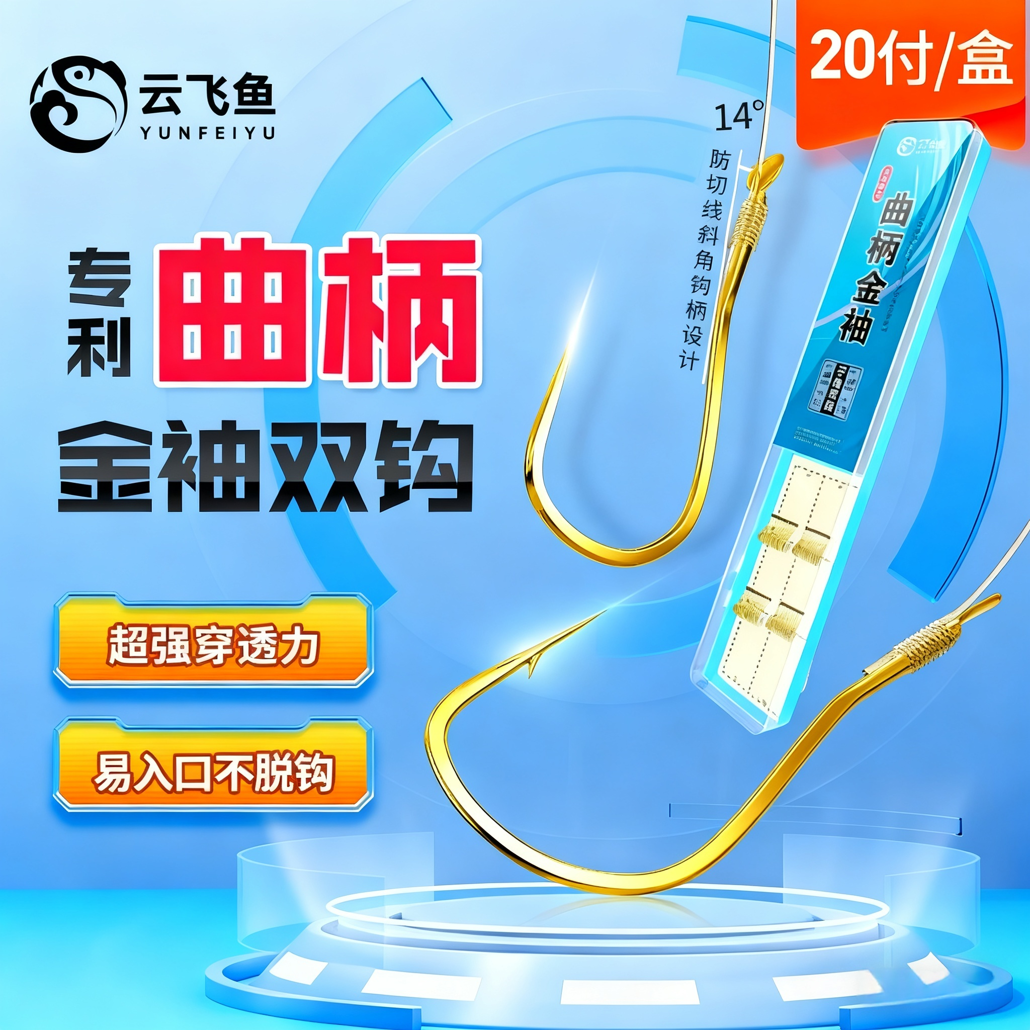 曲柄金袖鱼钩子线双钩成品绑好防缠绕新款有刺无刺鱼钩袖钩鲫鱼钩