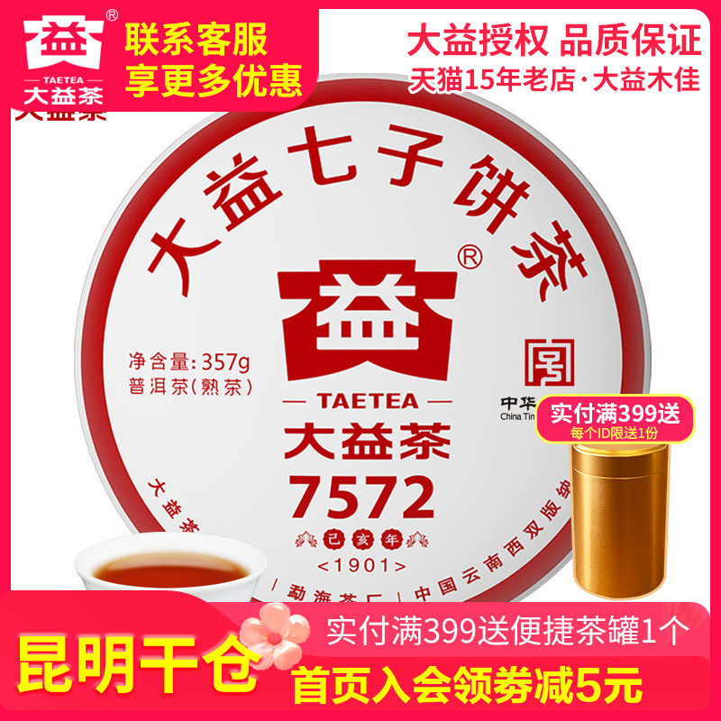 【昆明仓】大益茶 2019年1901批7572熟茶饼357g 云南普洱标杆茶叶
