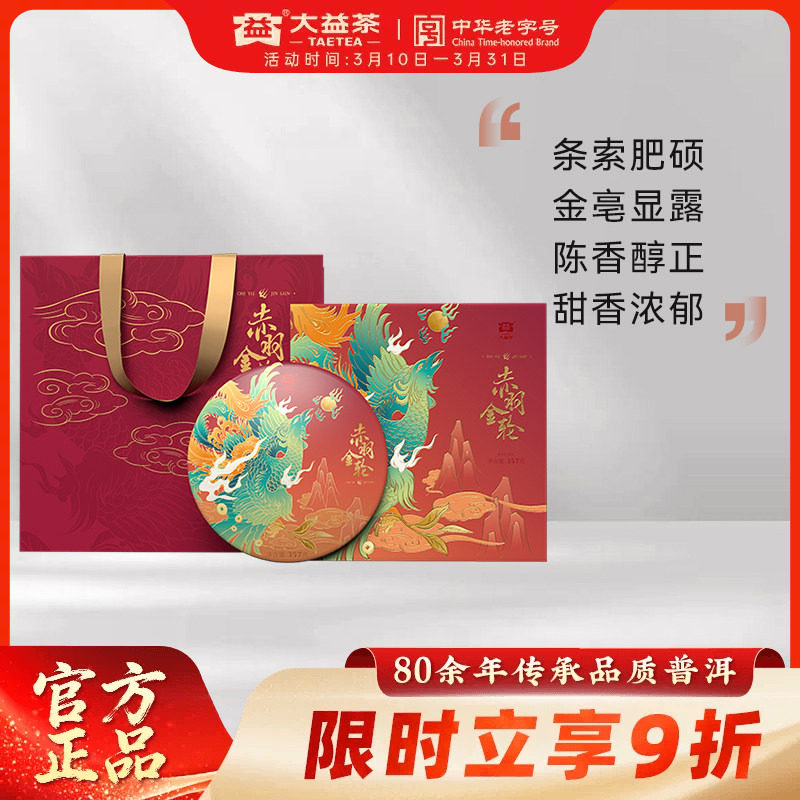大益茶叶赤羽金轮普洱熟茶357g饼茶高端茶叶礼盒节日送礼送老丈人