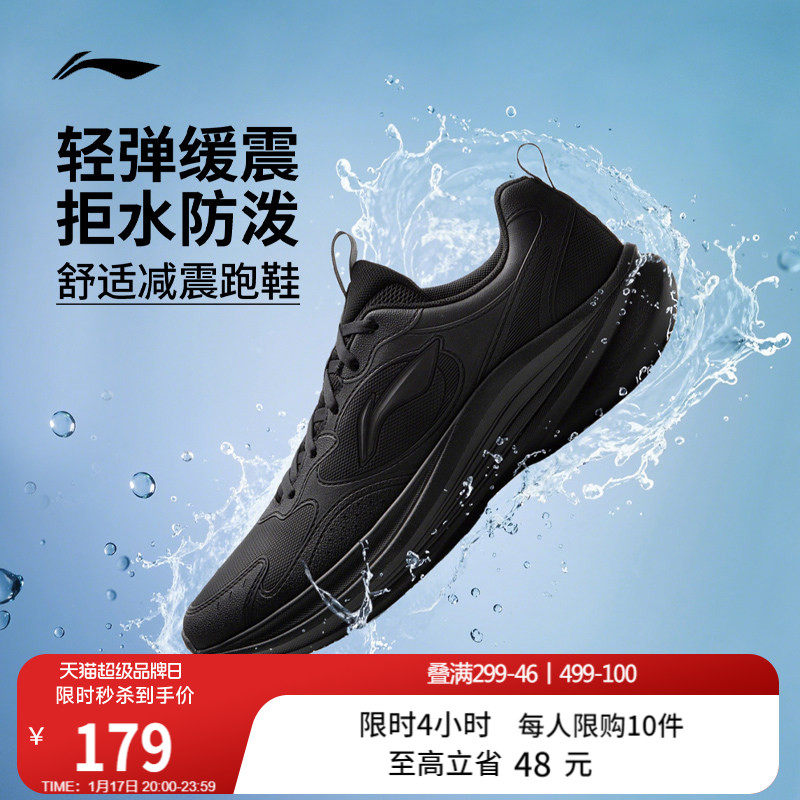 李宁跑步鞋男鞋官方减震耐磨网面轻便透气跑鞋黑色休闲慢跑运动鞋