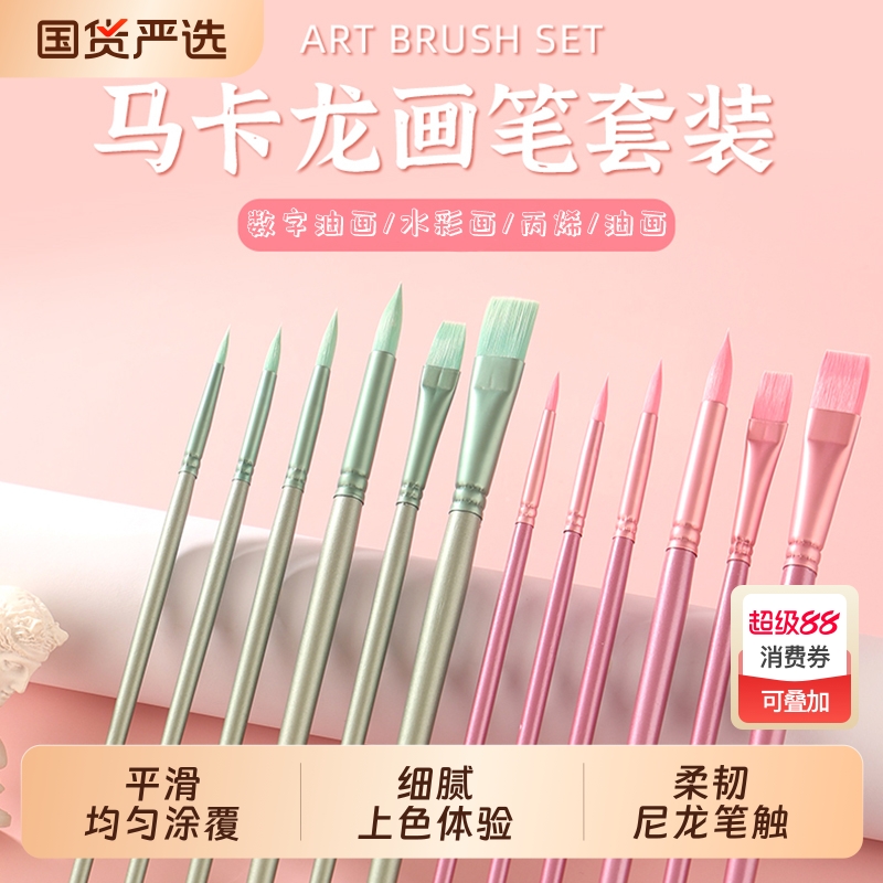 10支尼龙毛油画笔水彩笔套装水粉笔国画绘画丙烯画笔数字专用笔刷
