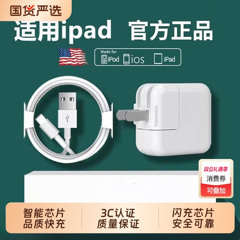 【国家3C认证】【官方正品】适用苹果ipad充电器头mini5/Air/2/3/4/6/8平板typec10数据线ipadpro快充12w插头