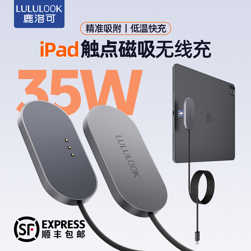 鹿洛可适用苹果ipad无线充平板充电器磁吸触点iPad Air/iPadPro便携35W快充线2米加长背充游戏平板快速充电线
