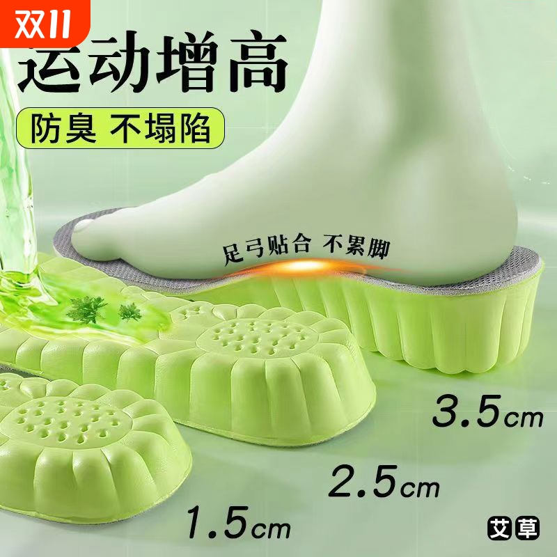 艾草隐形内增高鞋垫男女款运动加高加厚超软巨厚超厚防臭透气软弹