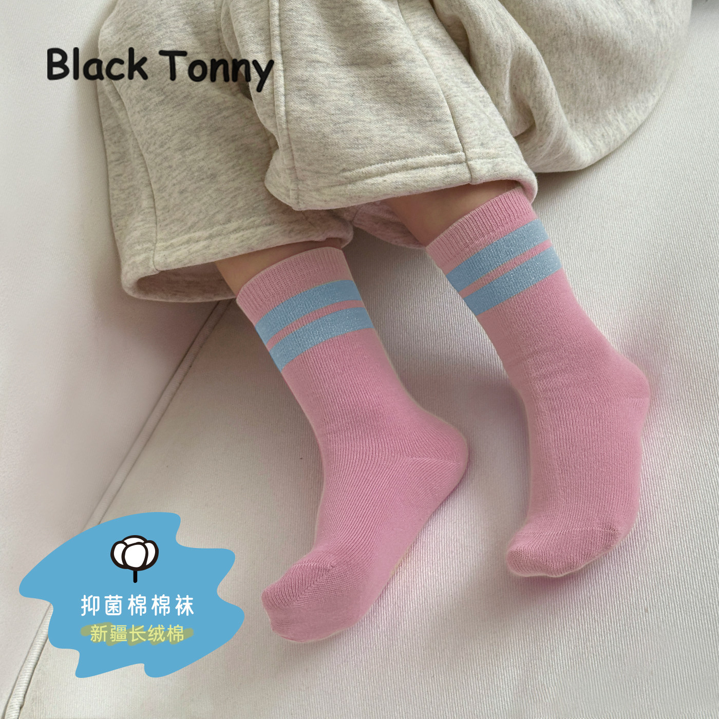 小黑托昵儿童袜子男女童秋冬男宝宝吸汗无骨宝宝棉袜学生中筒袜子
