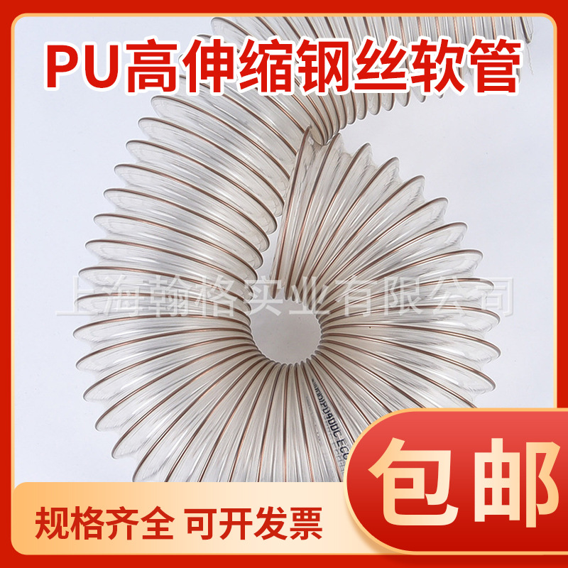 PU钢丝吸尘软管聚氨酯耐高温风管透明钢丝软管木工机械钢丝伸缩管