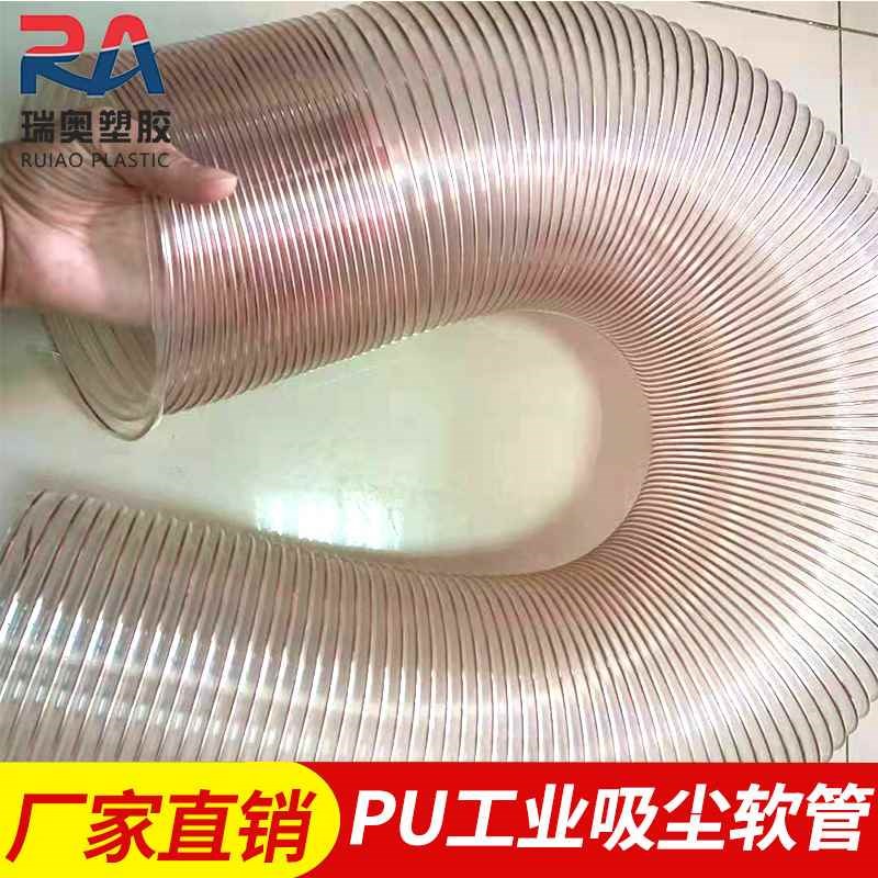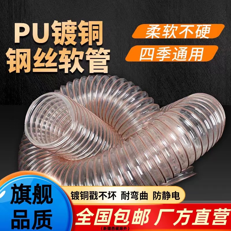 PU工业吸尘管软管镀铜钢丝聚氨酯雕刻机开料机器伸缩透明木工风管