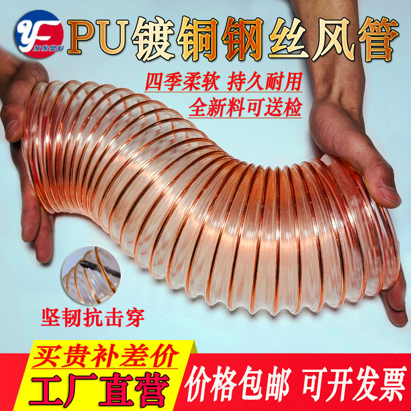 PU聚氨酯风管雕刻机镀铜钢丝软管透明木屑吸尘管伸缩通风厚0.63mm