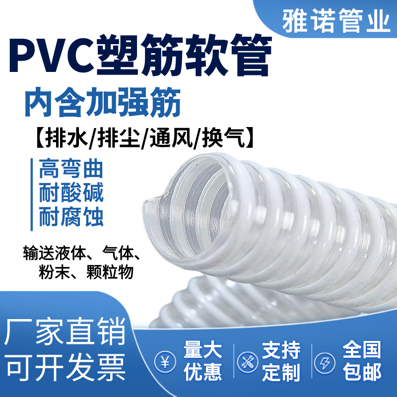 PVC塑筋管透明水管牛筋管波纹管通风吸尘软管粉末颗粒输送吸料管