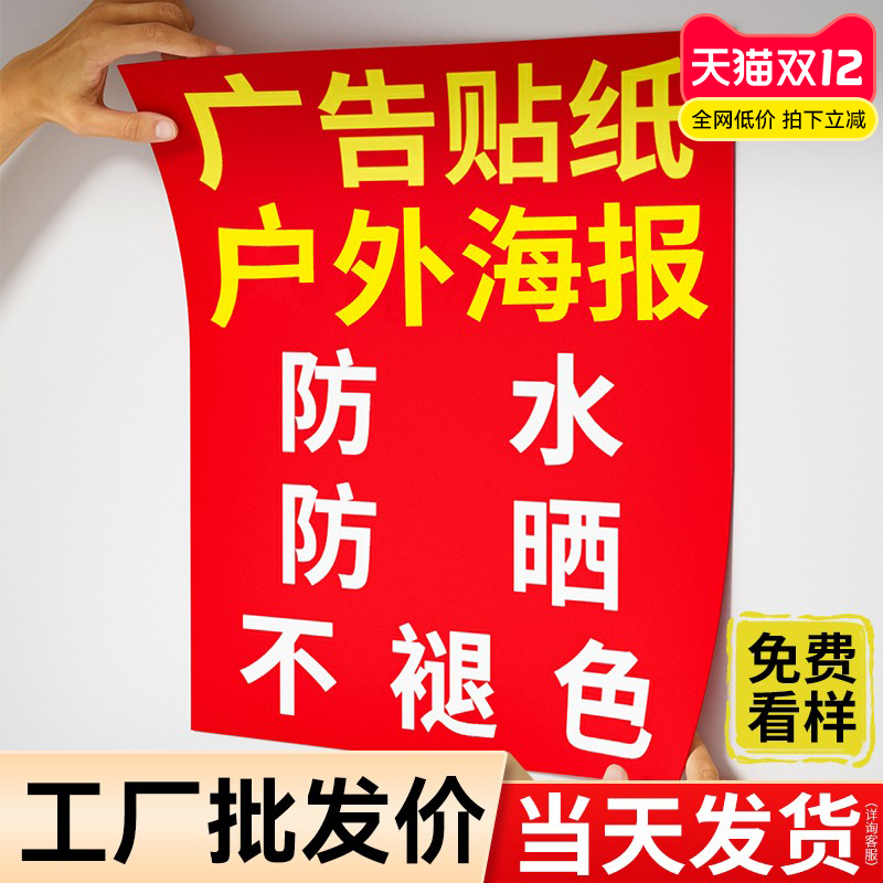广告贴纸自粘贴海报定制防水户外车贴招牌背胶不干胶打印墙贴写真