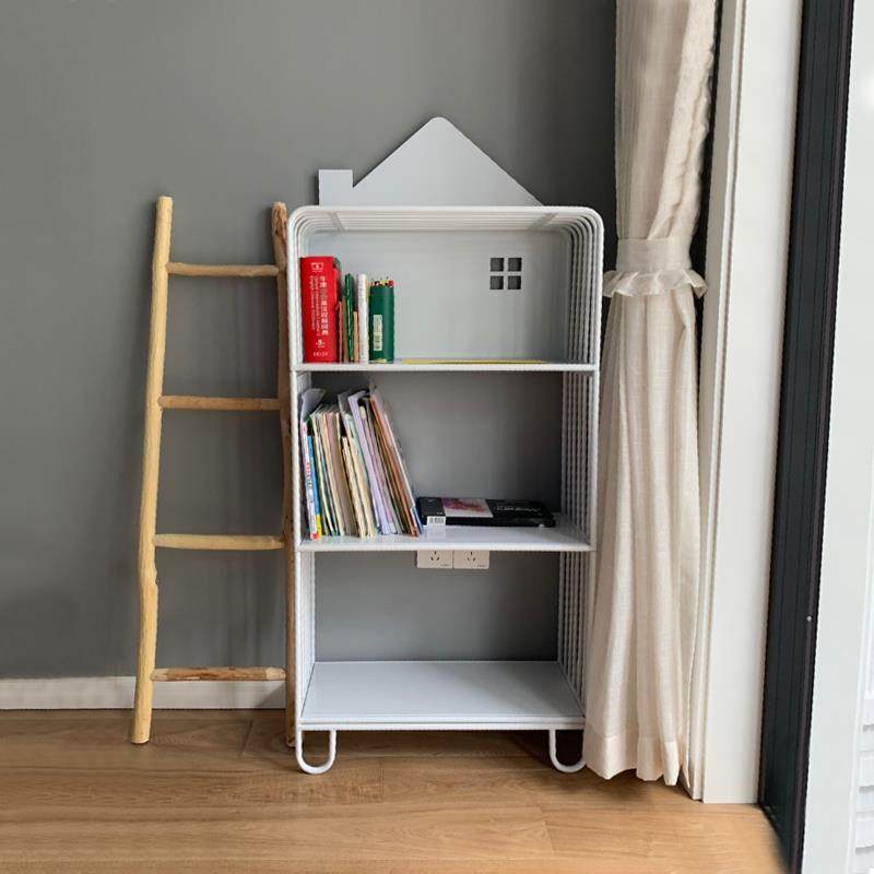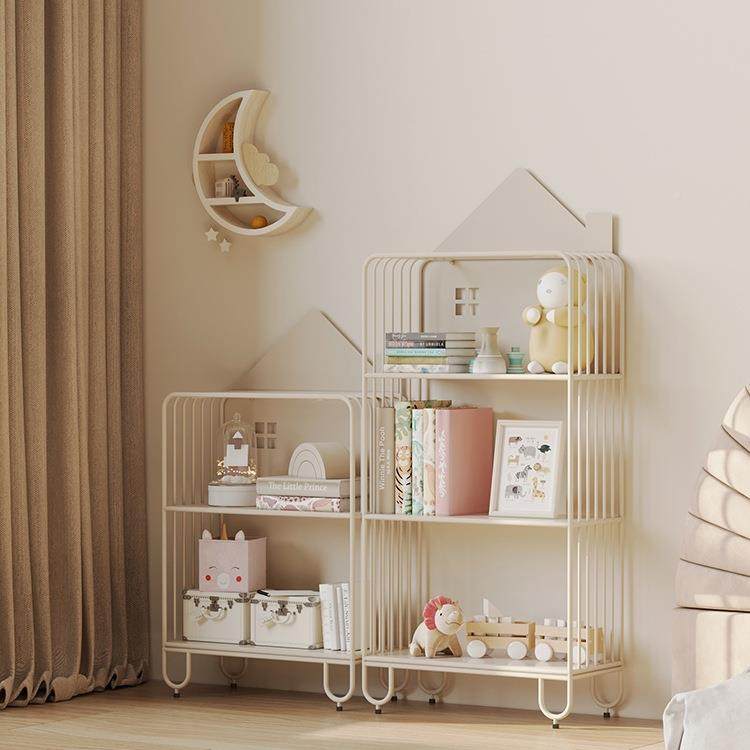 卧室简易铁艺置物架小房子靠墙落地儿童书架绘本收纳书柜飘窗移动
