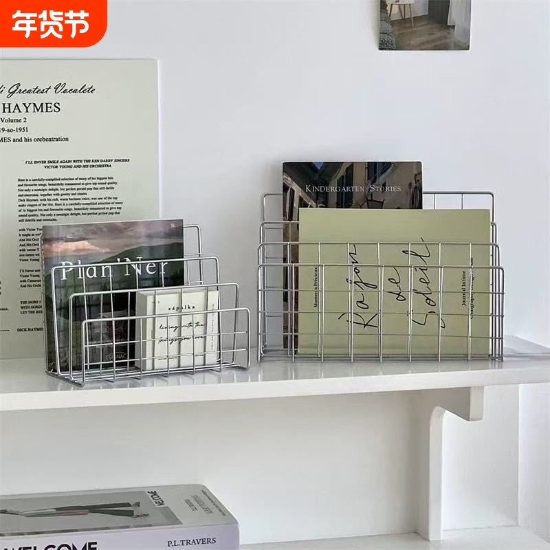 桌面书架铁艺置物架大容量桌上简易ins办公室小型杂志收纳整理架